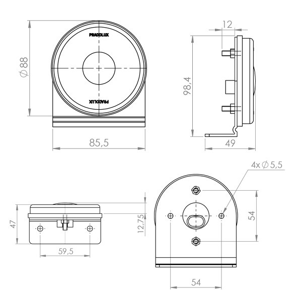 Lanterna lateral com haste e conector.
