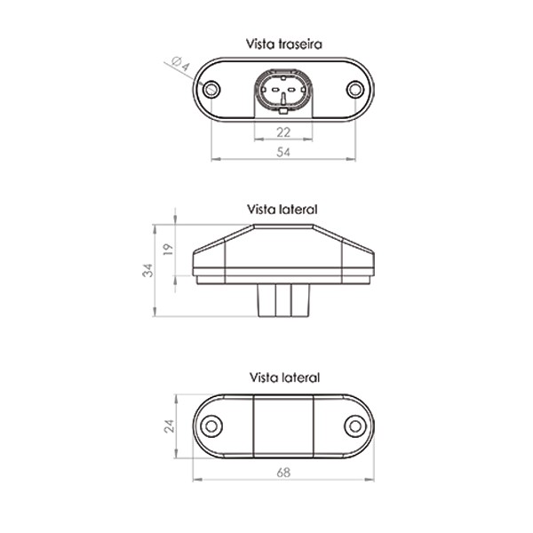 Lanterna LED delimitadora e luz de placa.