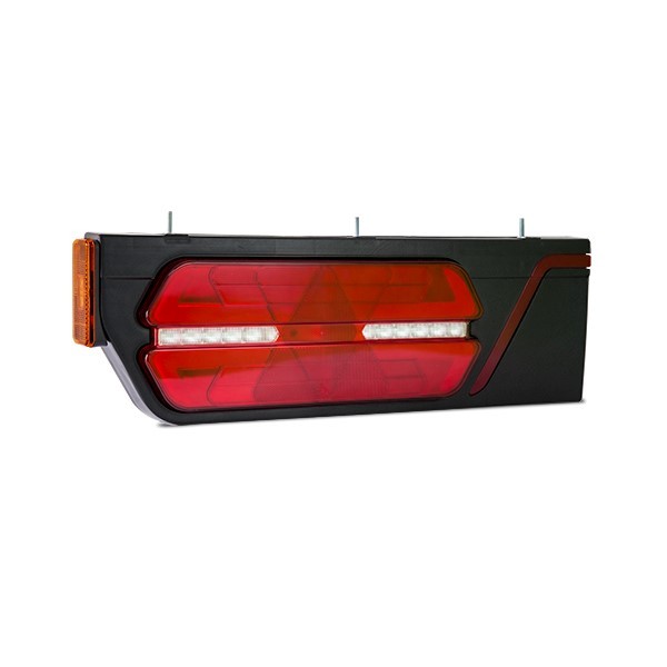 Com funções de posição, direcional sequencial, luz de ré e freio.