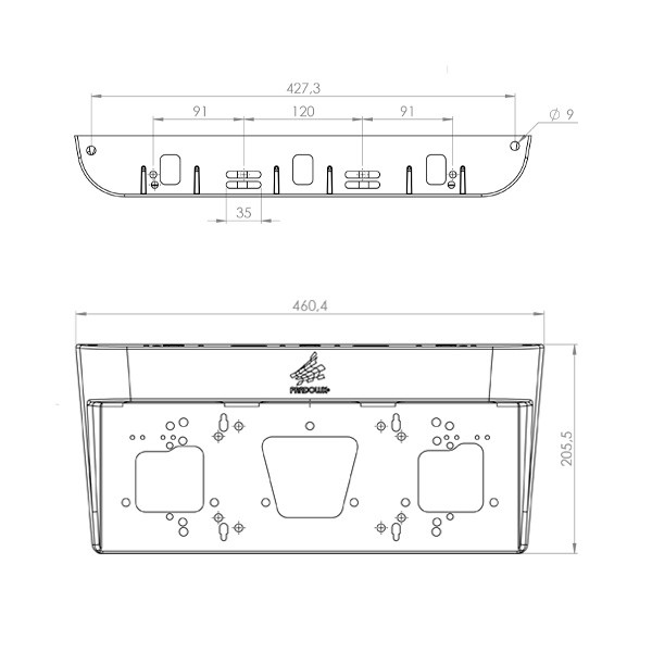 Suporte de placa de identificação veicular.